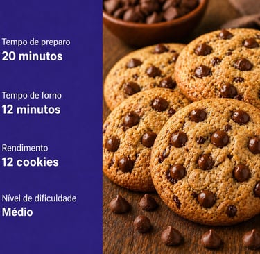 Um cookie clássico com gotas de chocolate ao leite, crocante por fora e macio por dentro. Fácil de preparar e perfeito para qualquer ocasião, é aquele tipo de receita que agrada todo mundo.