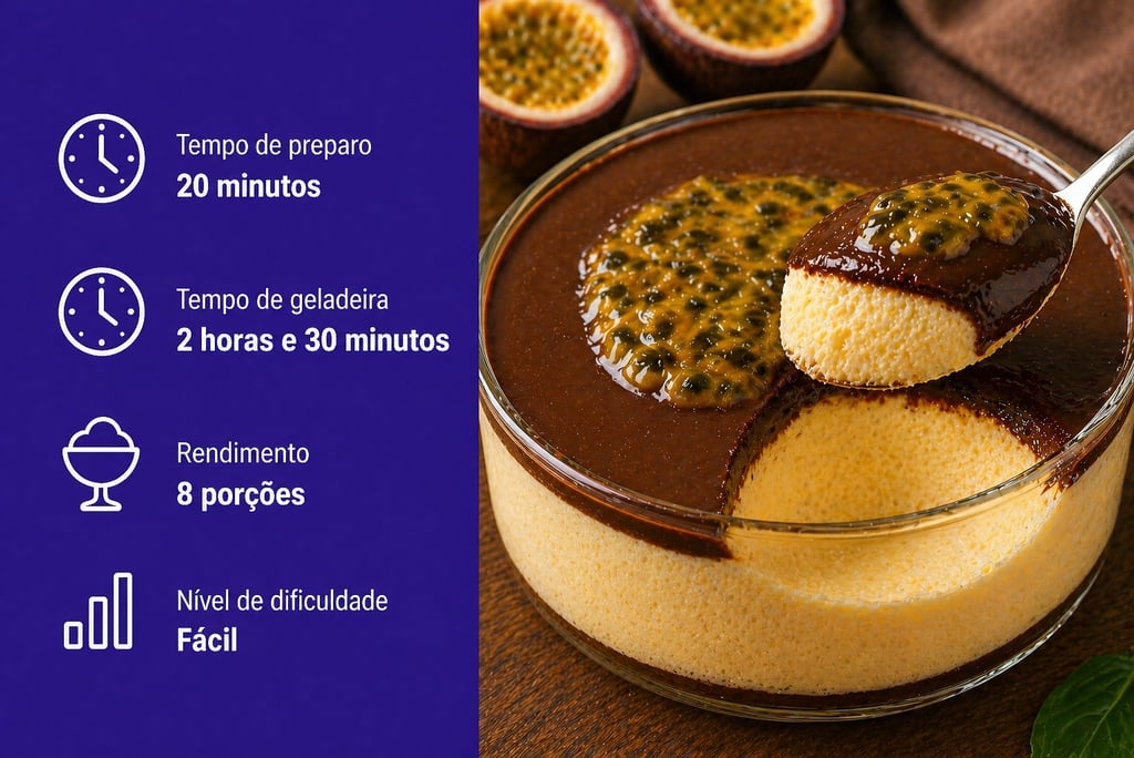 Uma sobremesa cremosa, refrescante e equilibrada, com o azedinho do maracujá contrastando perfeitamente com uma camada de ganache de chocolate. Fácil de fazer e com cara de sobremesa gourmet.