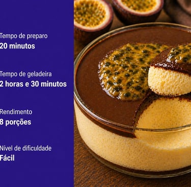 Um mousse de maracujá cremoso e refrescante, com o equilíbrio perfeito entre o doce e o azedinho da fruta, finalizado com uma camada de ganache de chocolate que deixa tudo ainda mais especial.