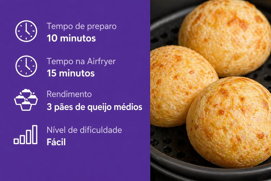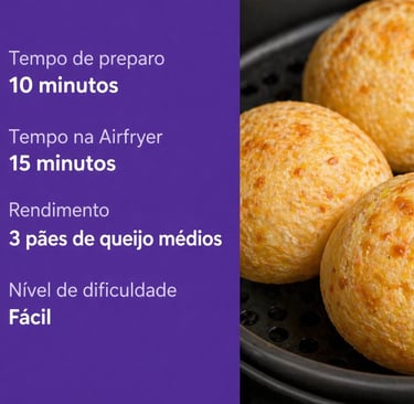 Um pão de queijo prático e rápido feito na Airfryer, perfeito para qualquer hora do dia. Com poucos ingredientes e preparo simples, ele fica macio por dentro, levemente crocante por fora e pronto em minutos.