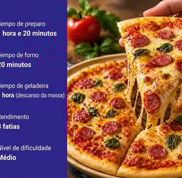 Uma pizza caseira com massa macia e sabor irresistível, perfeita para qualquer ocasião. Fácil de preparar e super versátil, você pode montar com seus ingredientes favoritos e criar uma versão única.